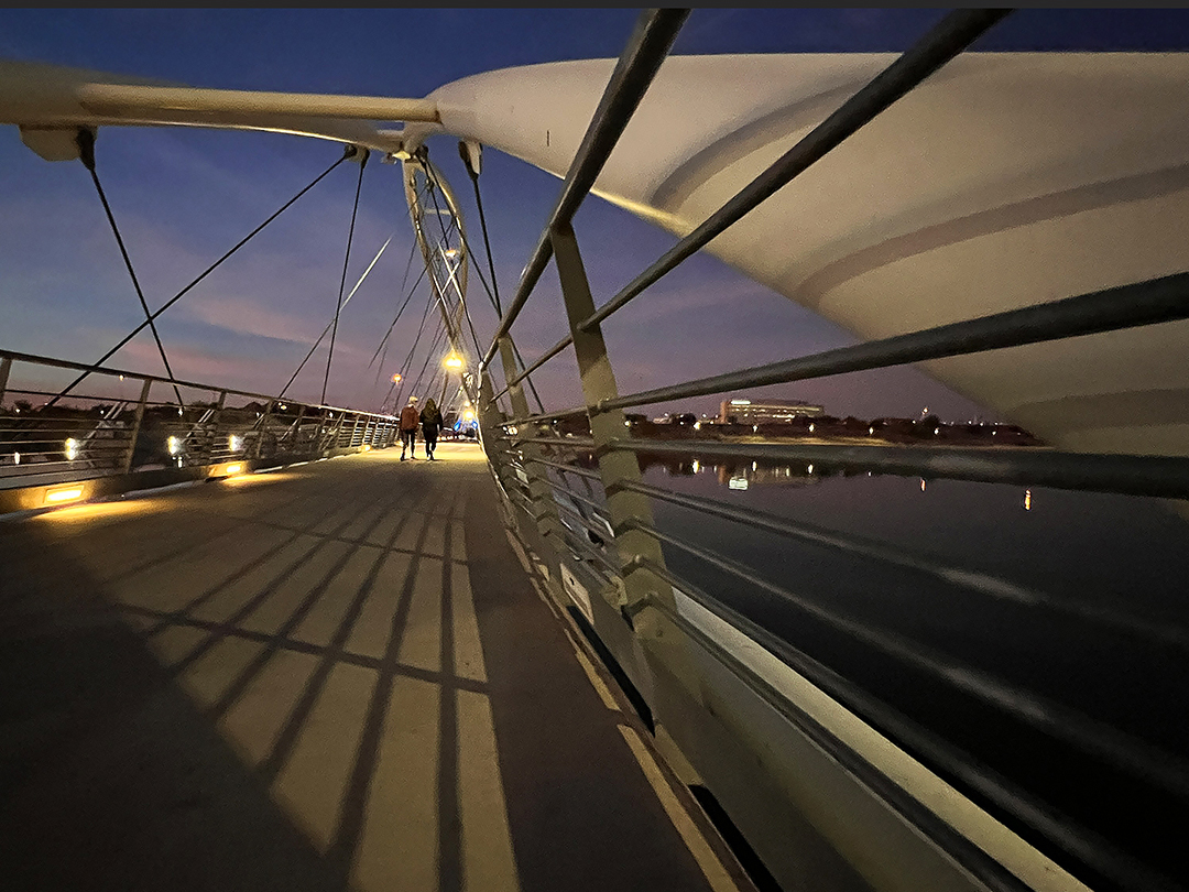 Mood is often created through a combination of on-location influencers. Light temperature (golden hour), Timing (photographer set up, cars to clear bridge lanes), and Composition (leading lines of the bridge and suspended lighting) – all working together to create a feeling that goes beyond what is simply seen. It becomes a single image story…